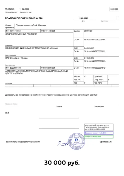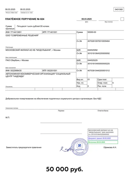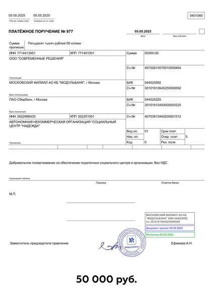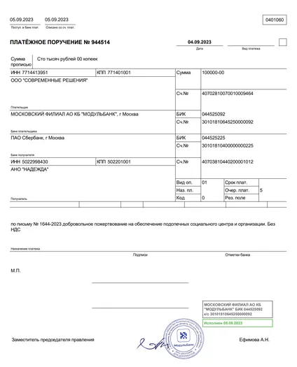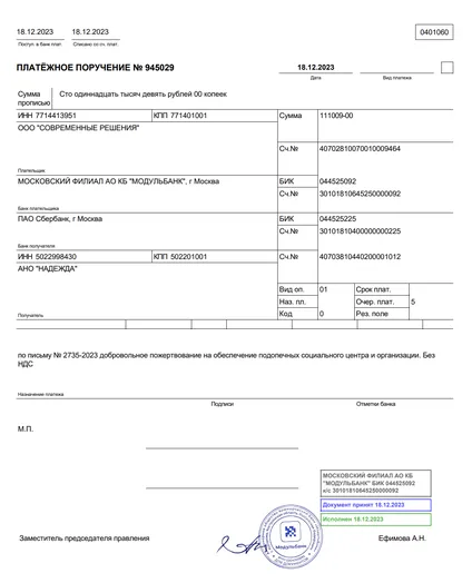Переводы в детский дом "Надежда"