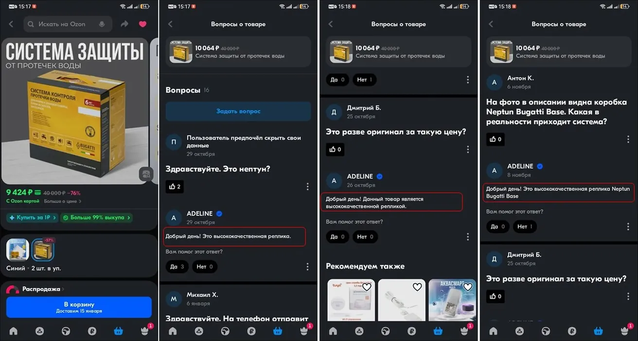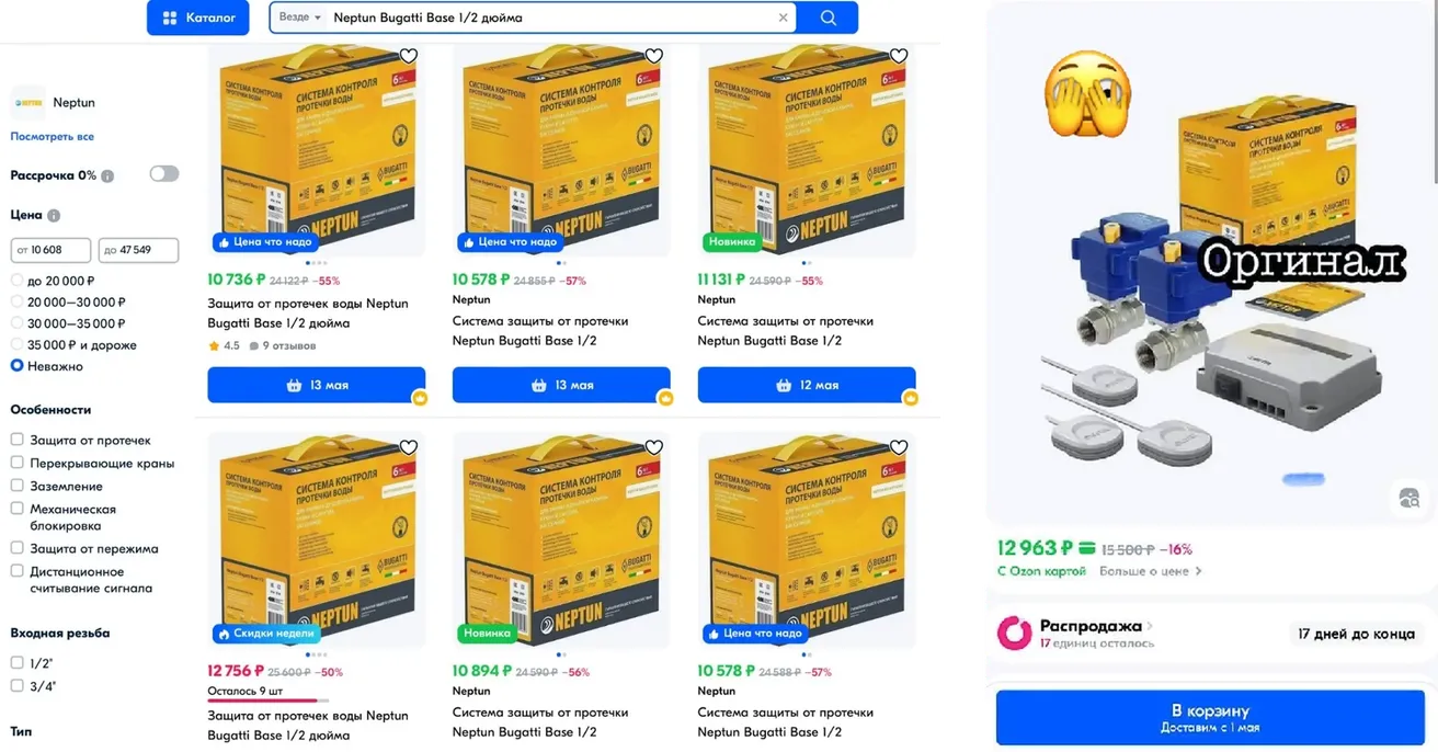 Другая проблема, что контрафакт выставляется на продажу в том числе и на самые крупные маркетплейсы, которым многие покупатели доверяют. При выявлении контрафактной продукции юридический отдел Neptun пишет запросы в поддержку маркетплейсов о блокировке таких продавцов, однако реакция наступает только спустя 2-3 недели, а продажи контрафакта в это время не останавливаются…