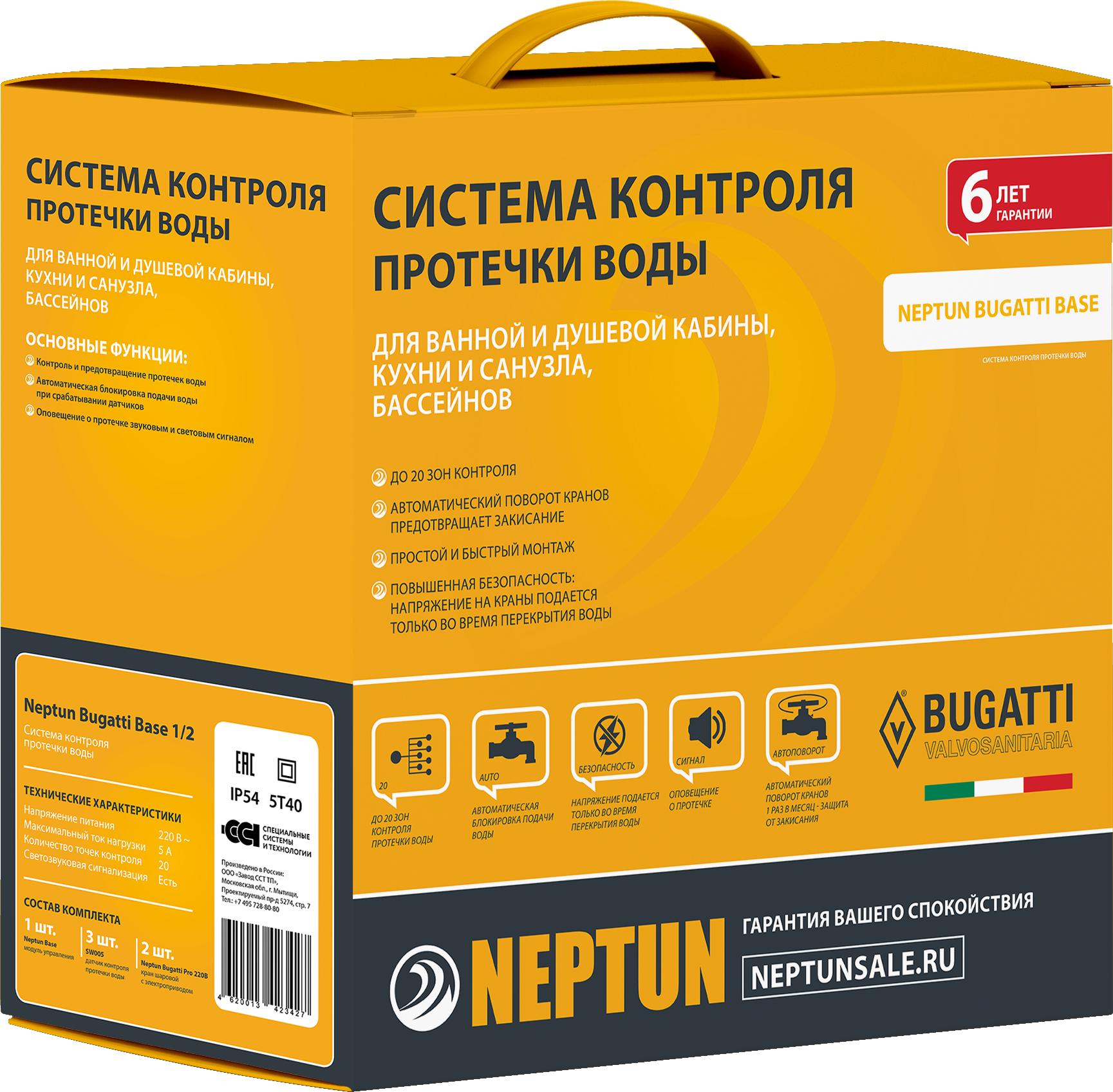 Система контроля протечки воды Neptun Base предназначена для своевременного обнаружения и локализации протечек воды в системе водоснабжения и отопления жилых домов, коттеджей, офисных зданий, магазинов. Система заблокирует подачу воды до устранения причин протечки и проинформирует о возникшей аварии звуковым и световым сигналами.СОСТАВ КОМПЛЕКТА
