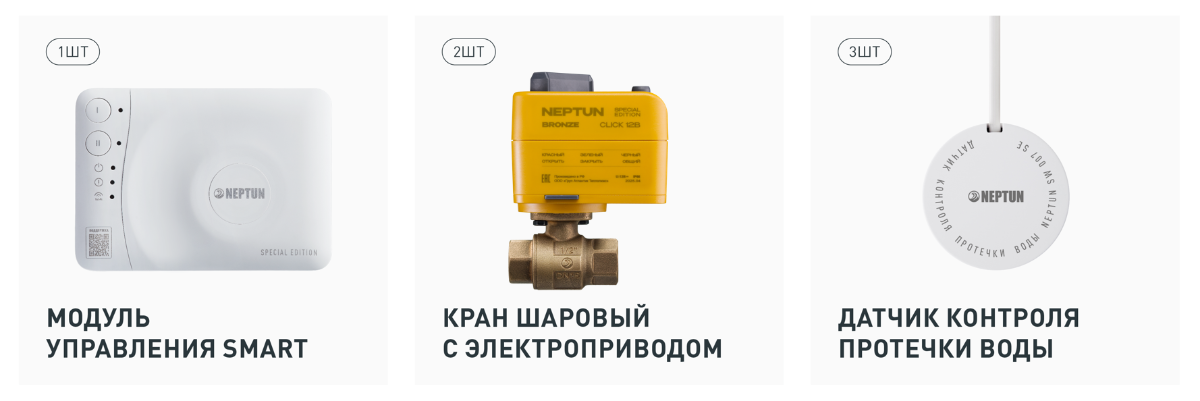 • Удаленное управление подачей воды при помощи смартфонаКОМПЛЕКТУЮЩИЕ НЕПТУН: