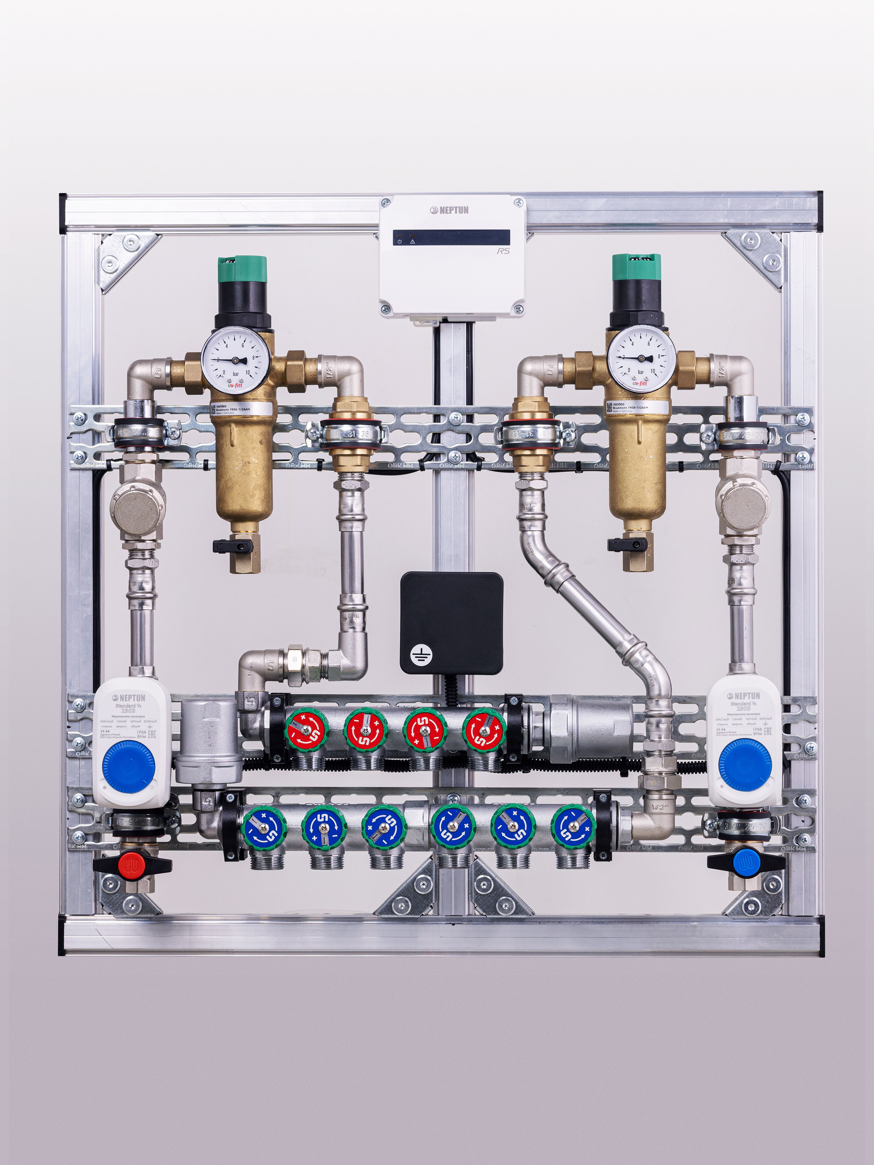 Узел укомплектован всеми необходимыми элементами для защиты от протечек воды, стабилизации давления, очистки воды и удобного распределения потоков по потребителям. Компактные размеры позволяют установить его даже в ограниченном пространстве без потери функциональности.