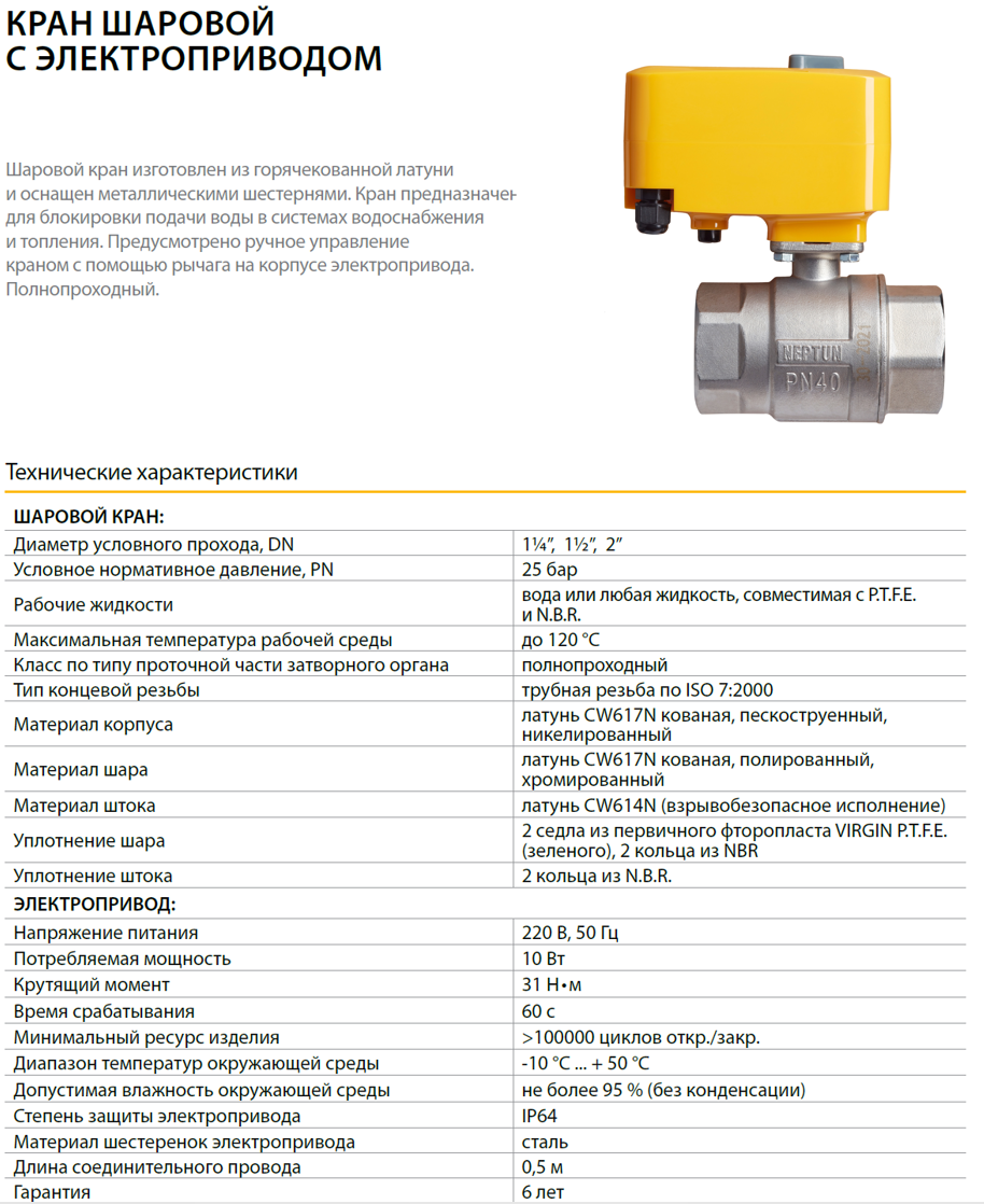 Высокопроизводительный шаровой кран с электроприводом Neptun Bonomi 220B в исполнении 1½″ предназначен для автоматизированных инженерных систем, где требуется максимальная надёжность, эффективность.