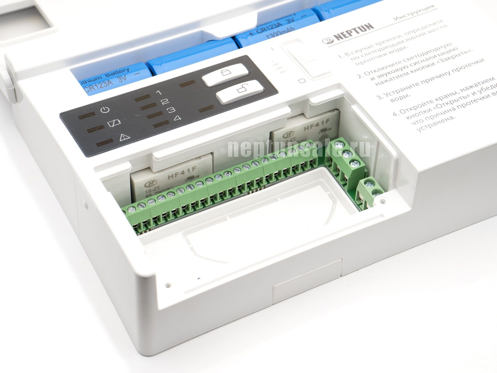 Предназначен для обработки сигналов от датчиков контроля протечки воды и выдачи управляющего сигнала на исполнительное устройство, перекрывающее воду.