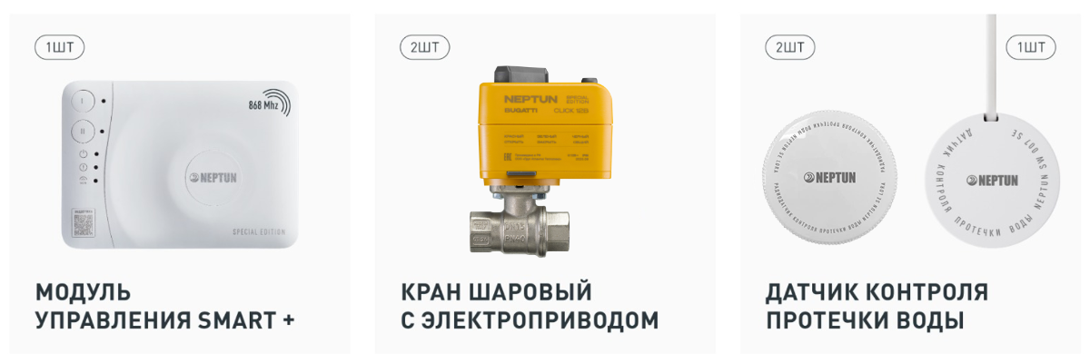 • Удаленное управление подачей воды при помощи смартфонаКОМПЛЕКТУЮЩИЕ НЕПТУН: