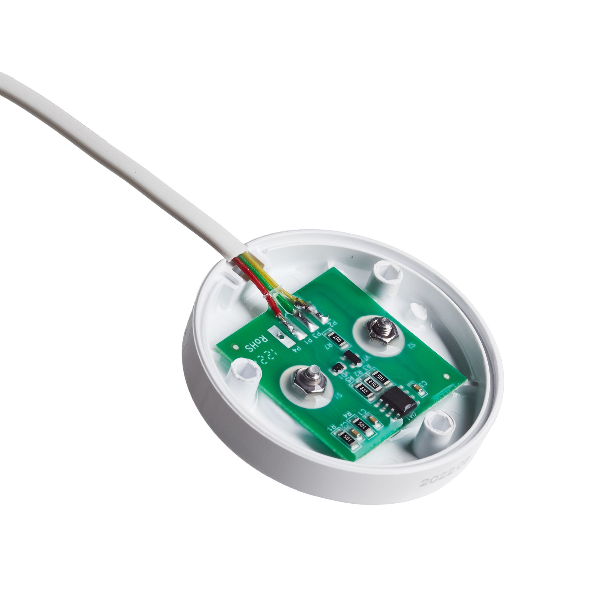 Датчик предназначен для фиксации протечки воды и передачи аварийного сигнала на модуль управления.
